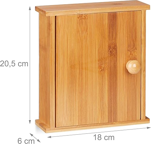 Relaxdays Boîte 6 Crochets, Armoire à Clef Murale, Rangement fermant à clé, Bois, HxlxP: 20,5 x 18 x 6 cm, Nature, Bambou, métal, 1 élément