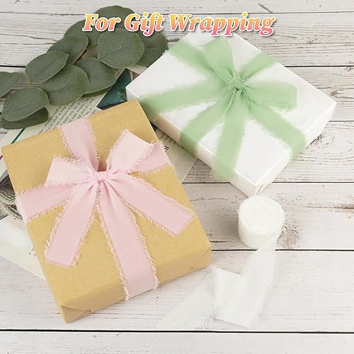MOLENCO 3 Rouleaux Ruban Mousseline, 4cm x 15m Rubans Vert Sauge, Ruban Décoratif pour Bouque Paquets Cadeaux, Mariages, Décorations de Vacances