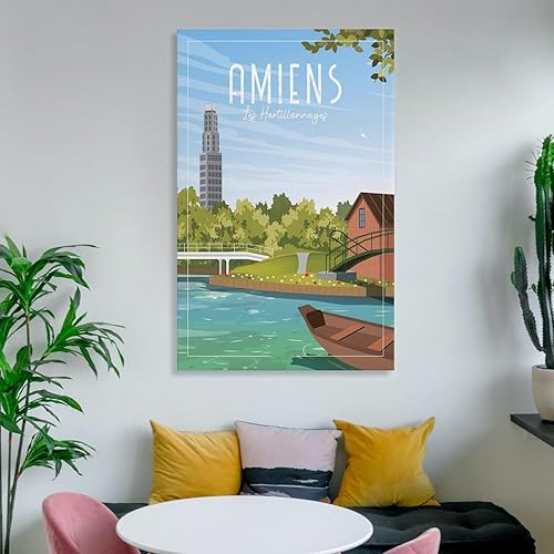 Amiens – Affiches sur toile de style rustique pour décoration d'intérieur, chambre à coucher, bureau, salon, salon, chambre à coucher, bureau, rivière de France, 20 x 30 cm