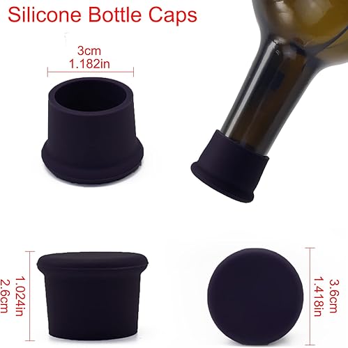 JCKD 6pcs bouchon de bouteille en silicone, bouchon de bouteille de vin réutilisable pour vin, bouteille de Champagne, bouteille de bière, vin mousseux, garder le bouchon de bouteille frais (noir)