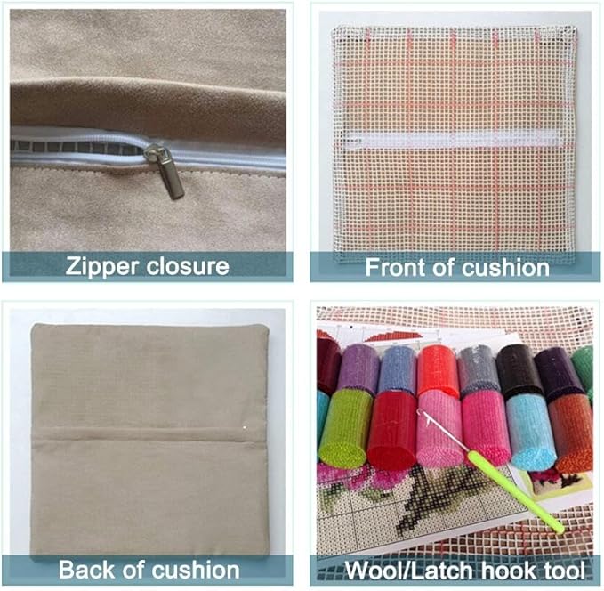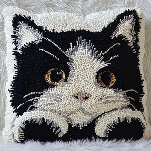 Kit Crochet de Verrouillage Tapis DIY Broderie, Kit Tapis Point Noué à Faire pour Débutants,Adultes,Latch Hook Canevas Coussin Point 43x43cm(Chat de compagnie, F)