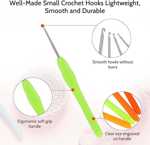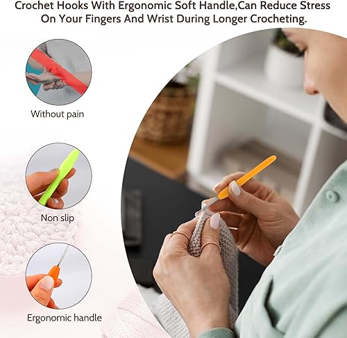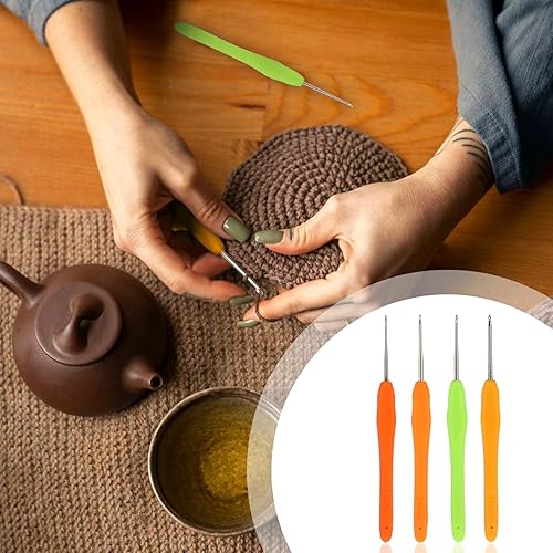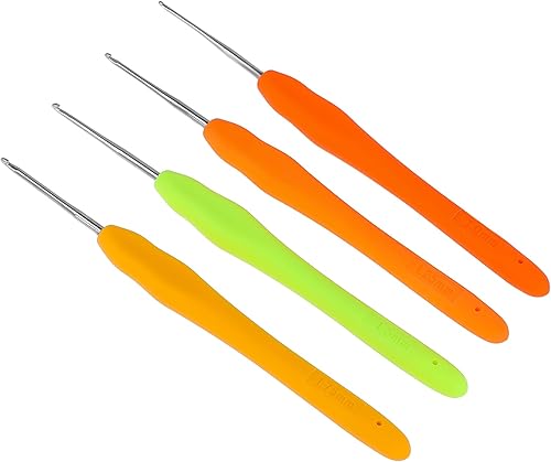 MOZEAT LENS Lot de 4 aiguilles à crochet colorées avec poignée ergonomique douce de 1,0 mm à 1,75 mm pour débutants (couleur aléatoire)