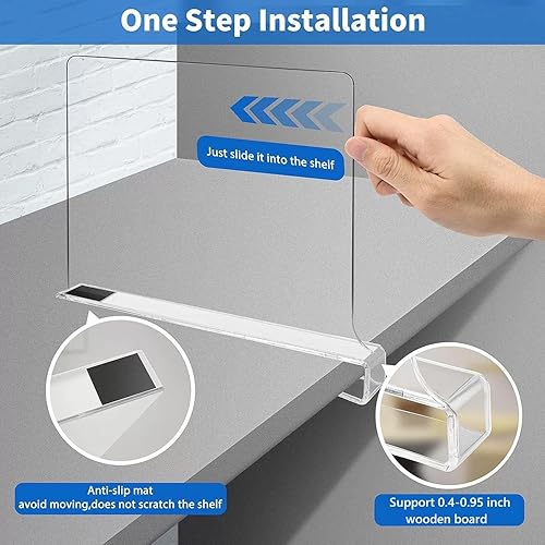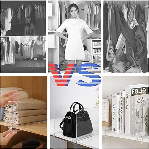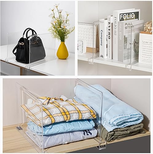 Lot de 6 séparateurs d'étagère en acrylique transparent - 30 x 20 cm - Séparateurs d'étagère multifonction - Séparateur de penderie pour chambre à coucher, cuisine, armoires et organisation, facile à
