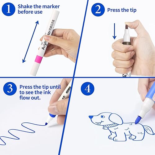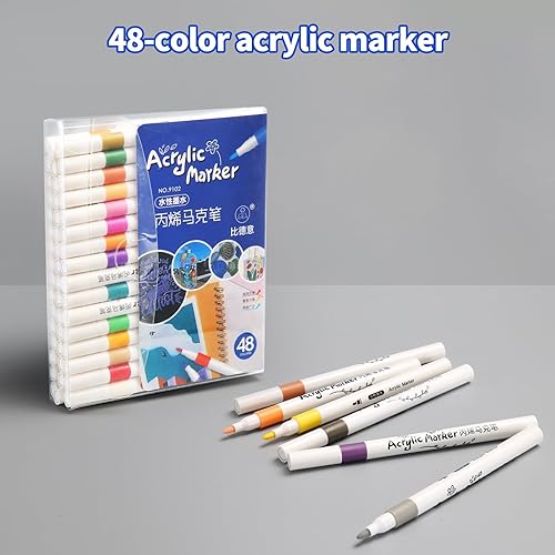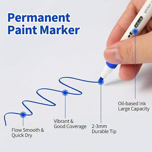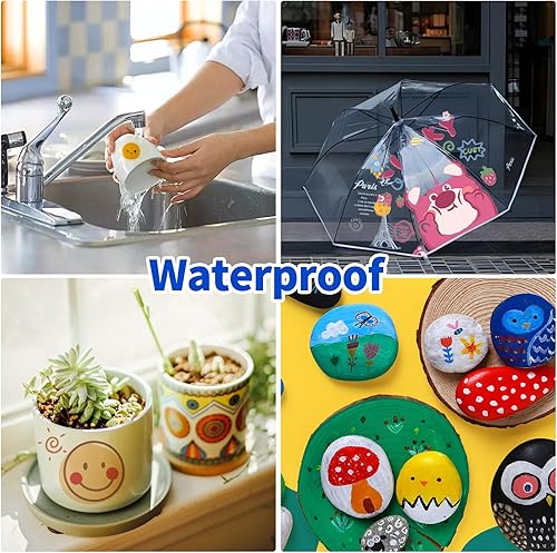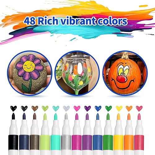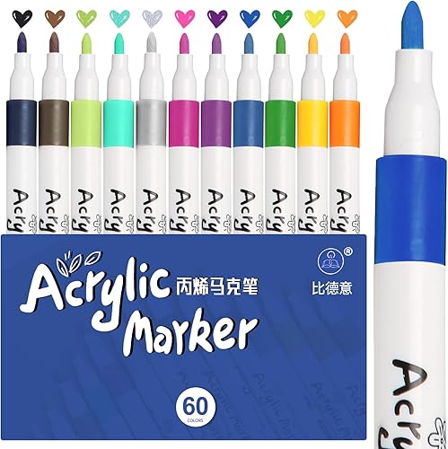 wenrescry Lot de 60 marqueurs acryliques permanents résistants à l'eau - Couleurs vives et pointe fine - Idéal pour peinture sur pierre, toile, bois, verre et projets de bricolage multi-surfaces