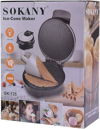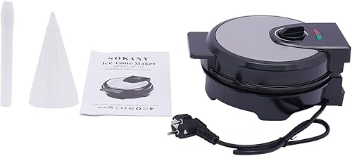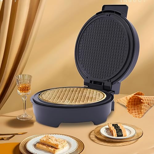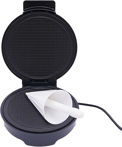 RjcdOPL Gaufrier à Cornets de Glace 1200W, Machine à Cônes de Glace avec Revêtement Antiadhésif, Température Réglable 150 à 200℃, Plaque de Cuisson 20cm Ø