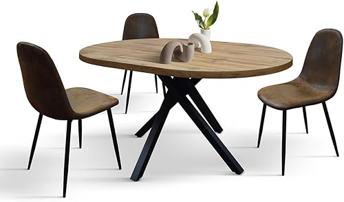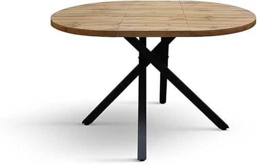PAZZO DESIGN Table ronde extensible Nada, table de salon, table de cuisine, pieds croisés noirs, fabriquée en Italie, chêne rustique, 100 x 75 cm - id_2220