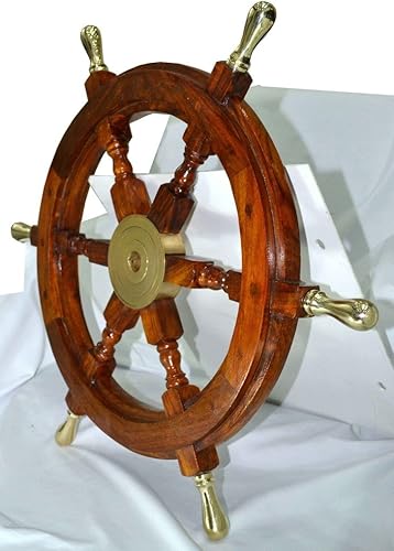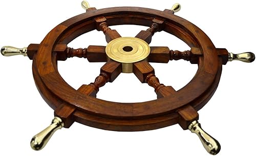 Bateau de roue navires volant nautique Roue Bois de roue Roue vintage nautique Décor nautique meubles nautique Antiquités nautique Art – avec poignée de laiton, Natural Wood Finish, 76.20 cm