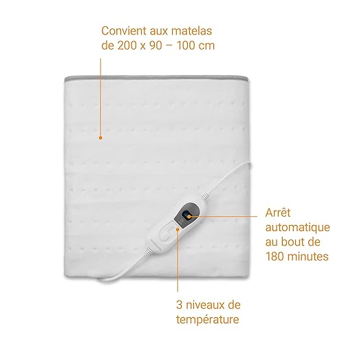 medisana HU 666 Protège-matelas chauffant, Couverture chauffante électrique, 150 x 80 cm, Couverture chauffante avec 3 niveaux de température, Système de sécurité, Arrêt automatique, Lavable à 30⁰