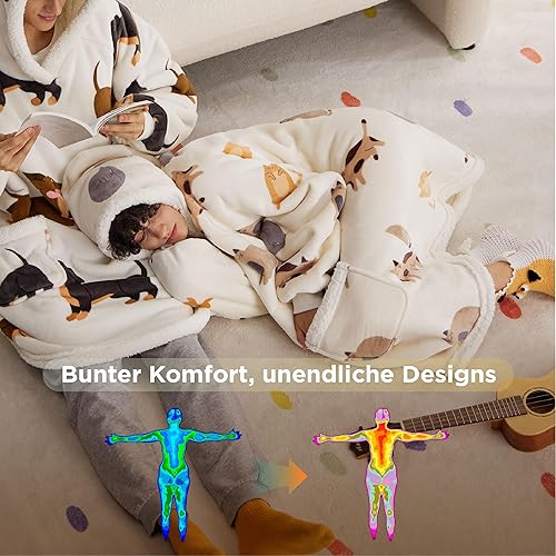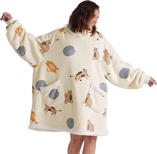 BEDSURE Plaid à capuche avec manches, couverture douillette, sherpa, pull douillet, cadeau pour femme (95 x 83 cm, motif chat)