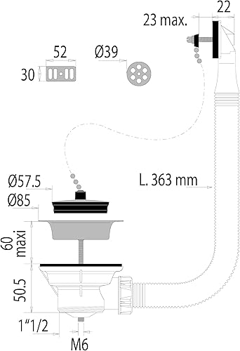 Bonde à bouchon pour évier avec trop plein Ø60 mm NOYON & THIEBAULT
