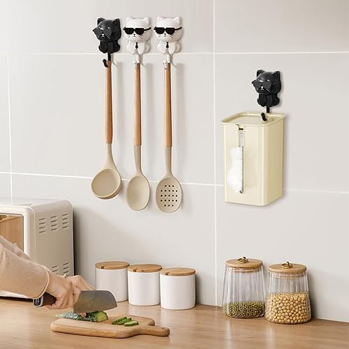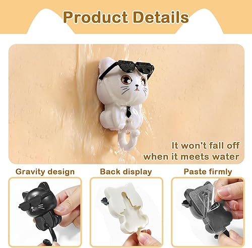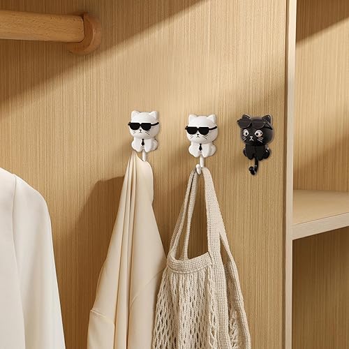 Minfuerang 2 Pièces Crochets Muraux Auto-Adhésifs Créatif,Crochets à Clés Chat Lunettes de Soleil,Accroches Robustes et Durables pour Enfants pour Suspendre Vêtements,Clés,Bijoux,Sacs (Blanc)