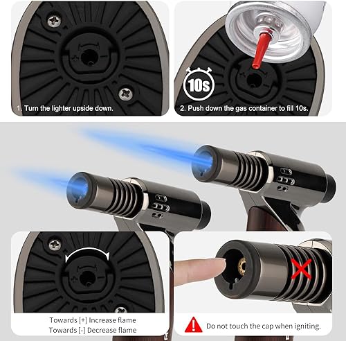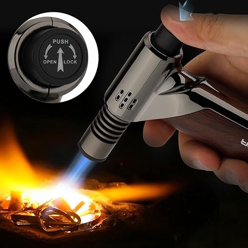 Chalumeau de cuisine pour la cuisine et le bricolage, briquet à souder avec verrouillage de sécurité et flamme réglable rechargeable au gaz butane pour crème brûlée, soudage, industriel (butane non
