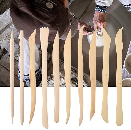 10pcs / Set Outil de Modelage de Sculpture en Argile en Bois Bricolage Outils de Sculpture en Argile en Bois Kits D'outils de Sculpture en Argile de Poterie pour Débutants