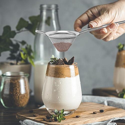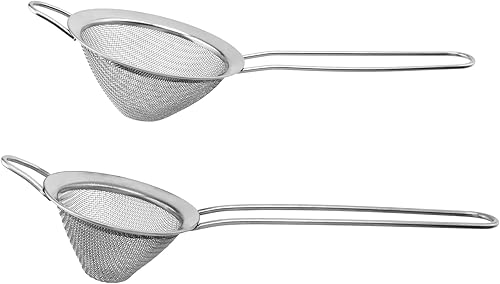 YIXNSW Lot de 2 passoires à cocktail coniques en acier inoxydable - 7 cm et 8,5 cm - Passoire à cocktail fine avec poignée pour cocktails, boissons au thé, pâtes