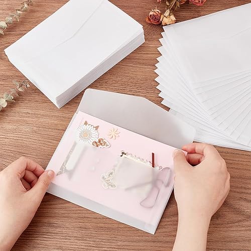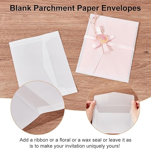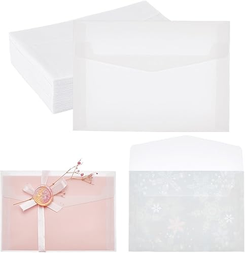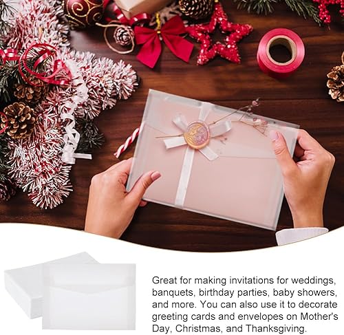 AHANDMAKER Lot de 100 vestes pliées en vélin translucide, enveloppes rectangulaires, fantômes, invitations de mariage, vestes pour invitations de fête