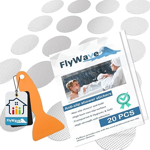FlyWave Antiderapant Douche 20 Pcs Tour, Antiderapant Baignoire Transparent, Auto-adhésif, Autocollant Anti Derapant Baignoire, Autocollants de Baignoire, Anti Derapant Douche