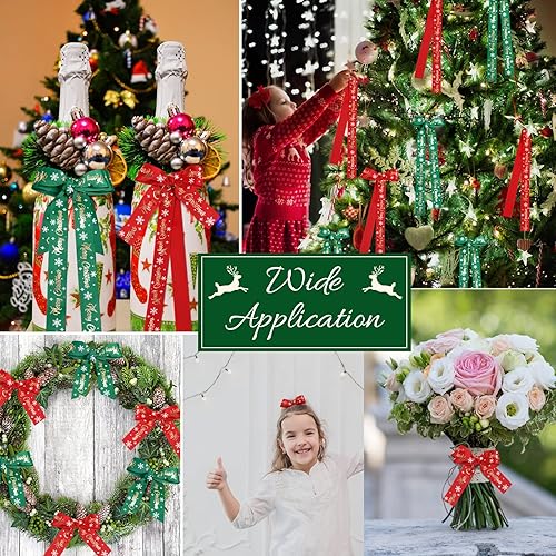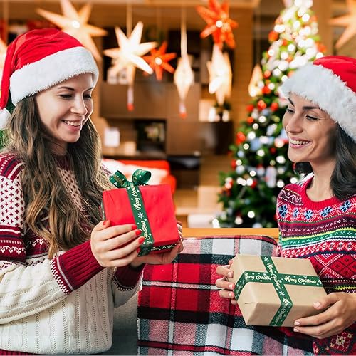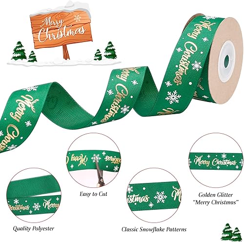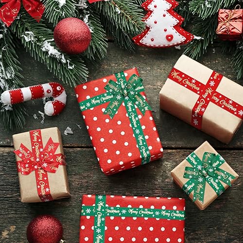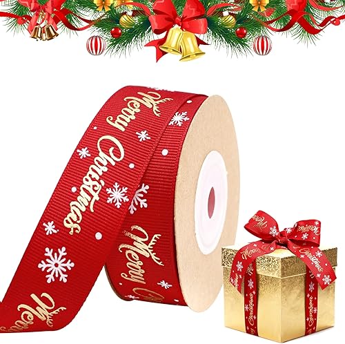 Ponsey Ruban de Noël rouge avec flocon neige - 9,1 m Pour travaux manuels et emballages cadeaux cartes gâteaux Noël, couronnes, nœuds, décoration d'arbre (2,5 cm large)