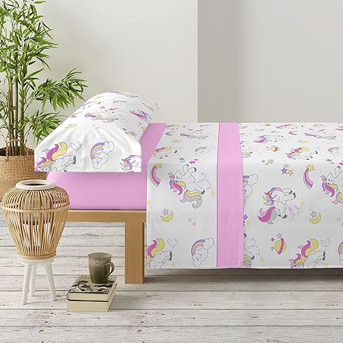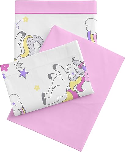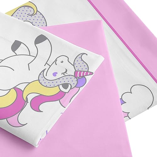 Degrees home Licorne - Parure de lit 90 x 190 cm pour Enfant - Draps en Microfibre - 3 pièces - Rose