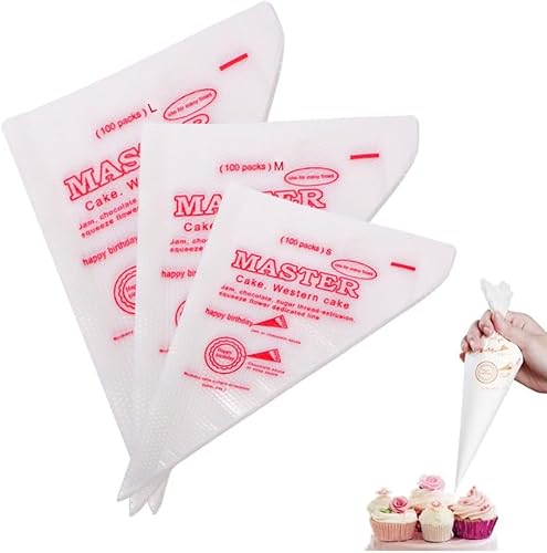 Anicy Lot de 300 poches à douille jetables - 3 tailles - Grandes poches à douille jetables pour décorer gâteaux, cupcakes, gâteaux (S/M/L)