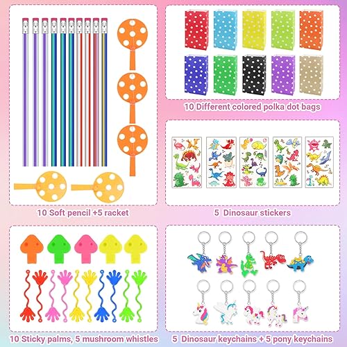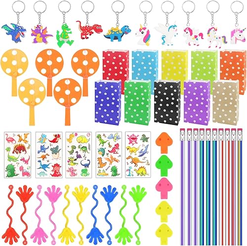 RtottiM Lot de 55 sacs cadeaux d'anniversaire pour enfants - Jouets pour enfants - Remplissage de sacs de fête pour filles et garçons - Dinosaure - Licorne - Applaudissements - Sifflet