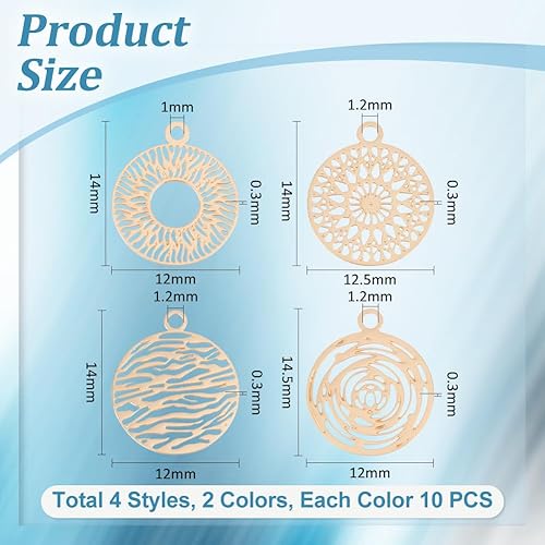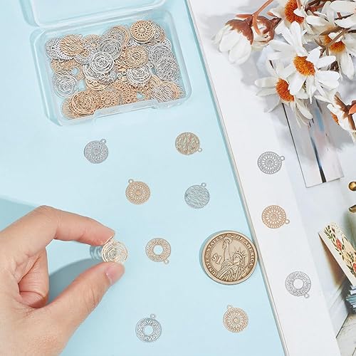 UNICRAFTALE 80 pcs 2 couleurs 4 styles Breloques Rondes Plates Breloques en Forme de Fleur Breloques en Filigrane Laiton Pendentifs Métal Breloques Creuses Breloques Fleur pour Bracelet de Bijoux