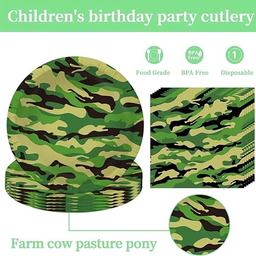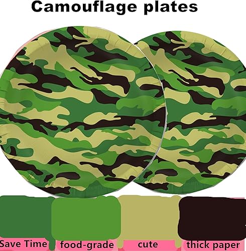 LGWJHCY Set de Couverts Camouflage, Kit Vaisselles Réutilisable, Fournitures de Fête D'anniversaire Camouflage pour Camouflage Thème Activité, Anniversaire Garçon, Camouflage Décorer.