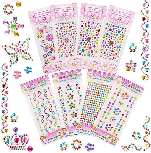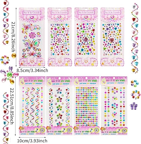 AIYONG Strass Autocollant Enfants 9 Feuilles, Feuilles de Gommettes Acryliques Autoadhésives pour Décoration, Maquillage et Loisirs Créatifs, Bricolage, Pierres Cristal pour Enfants