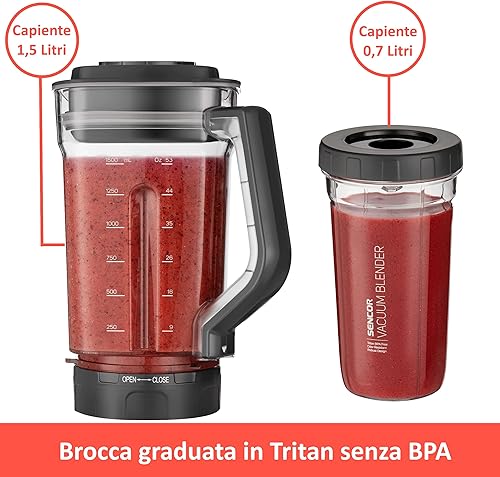 Sencor Super Mélangeur automatique sous vide - Blender Professionnel 1500W Multifonction avec Technologie Nutri Smart, Mélange Multicyclone 8 lames - pour Smoothies, Soupes, Nuts & Plus
