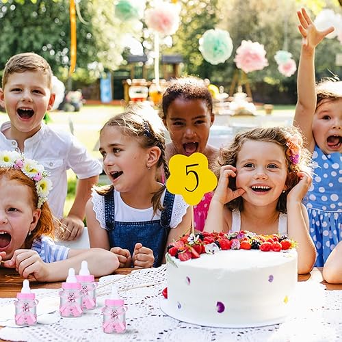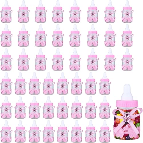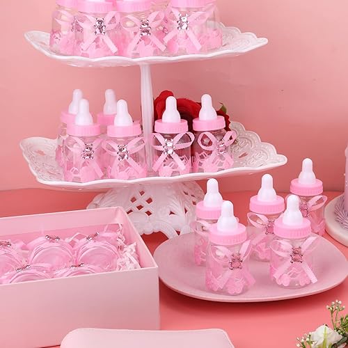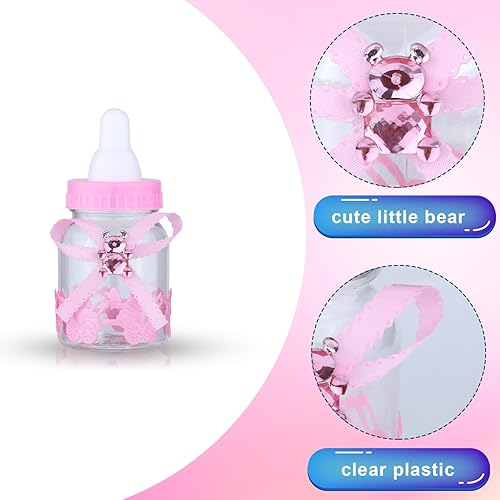 48pcs Mini Biberon Baby Shower, Biberon Decoration Baby Shower avec l'Ours en Plastique de Ruban Bouteilles de Faveurs de Douche de Bébé pour des Décorations de Douche de Bébé de Fille (Rose)