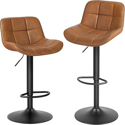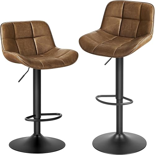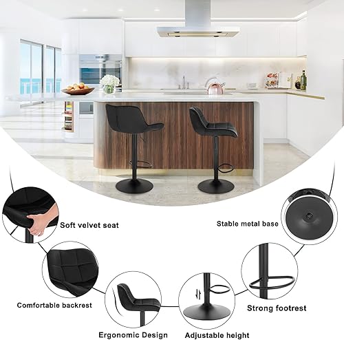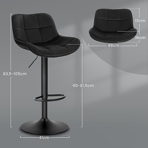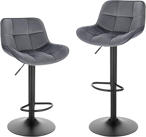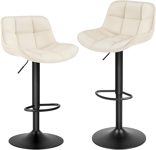 EUGAD Lot de 2 Tabourets Bar, Chaises de Bar Pivotantes, Tabourets de Bar avec Repose-Pieds et Dossier, Tabourets de Comptoir pour Bistro, Restaurant, Hauteur Réglable, en Velours, Crème