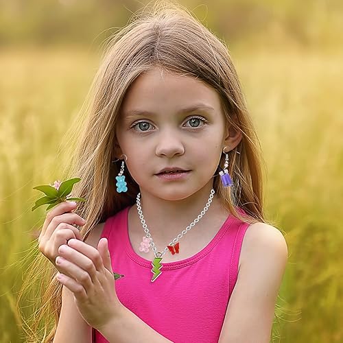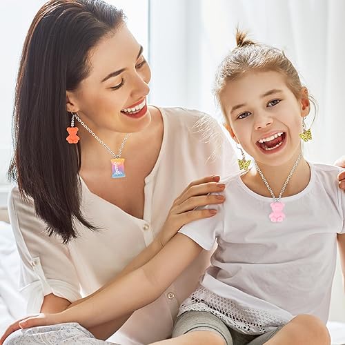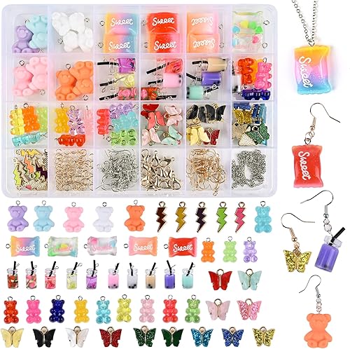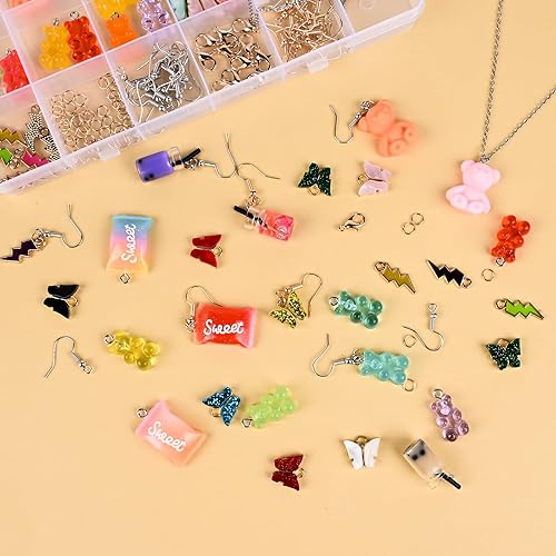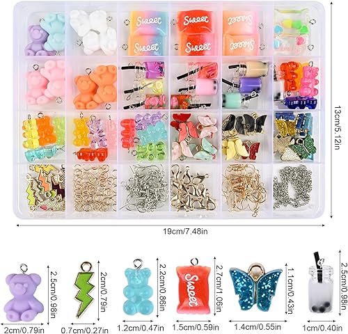 Victse Pendentifs Charms, Set de Bijoux pour Collier, Charms Butterfly Bubble Tea Pendentif Keychain Gummy Bear Boucles D'oreilles DIY Cadeau