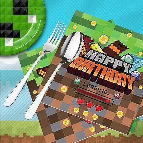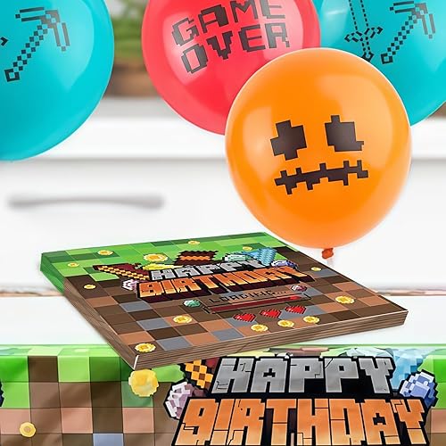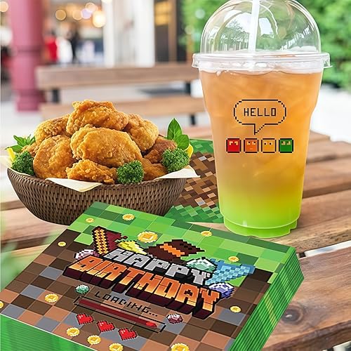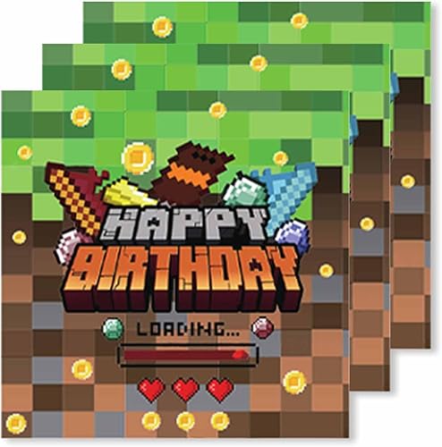 Yamobi 20 Serviettes à thème Pixel pour anniversaire, Serviettes Pixel pour anniversaire d'enfants, Serviettes anniversaire filles garçons, Serviettes d'anniversaire enfants Pixel