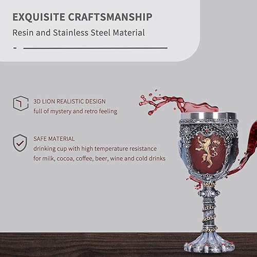 7,1x2,8 in Gobelet Lion en Acier Inoxydable, 11,1 Oz Résine 3D Calice de Vin Coupe Gobelet Calice de Vin Médiéval Tasse à Boire Gothique Nouveauté Idéal Pour Halloween Bar