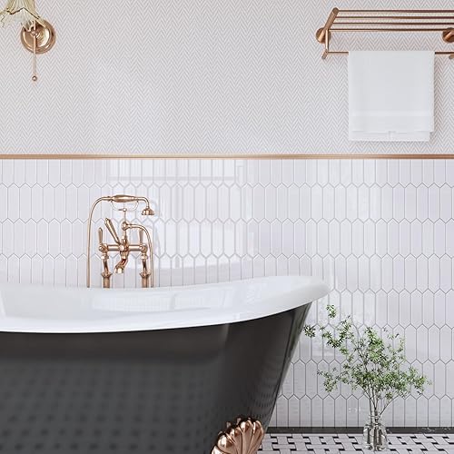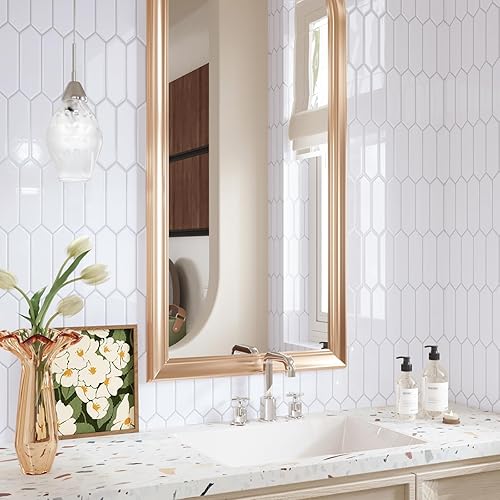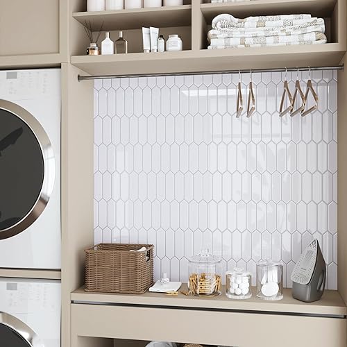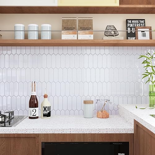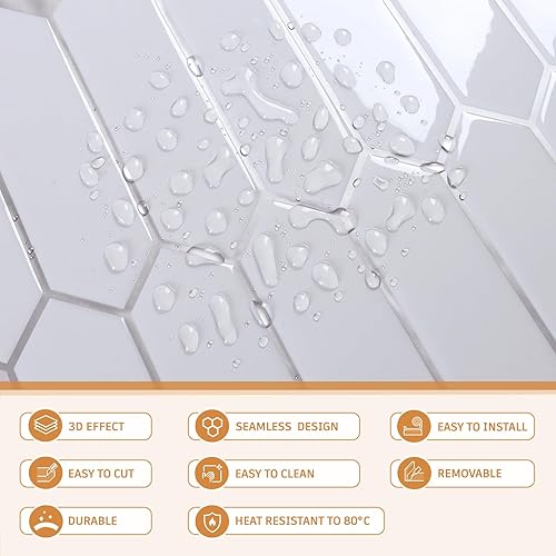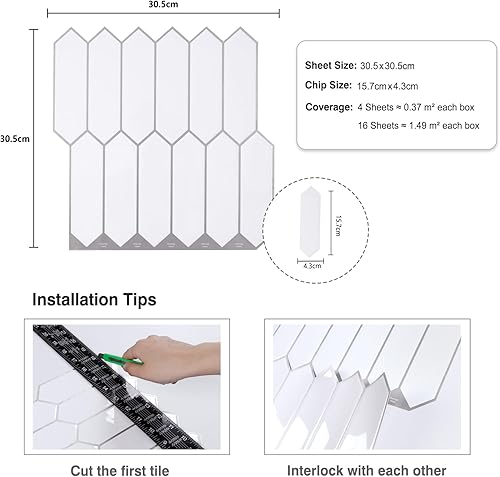 CRE8TIVE Carrelage Adhesif Mural Blanc Hexagone Long Credence Adhesive pour Cuisine Effet 3D Crédence Cuisine Carreaux Adhesif Salle de Bain Carrelage Adhesif Mural Buanderie 30.5cm x 30.5cm 4 Pièces