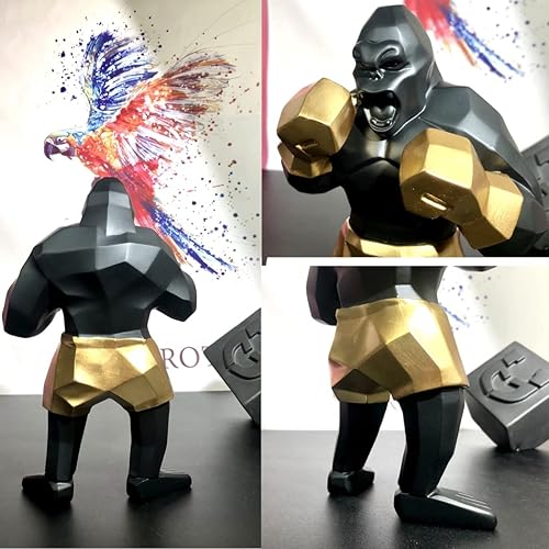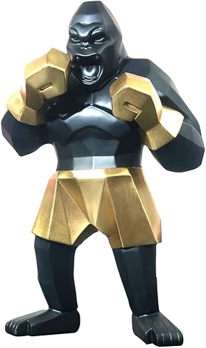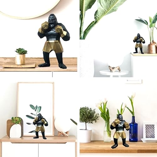 Gorille Statue,King Kong Statue,Statue Gorille, Gorille resine, King Kong Salon décoration résine géométrie Moderne Statue Decoration Interieur Maison Sculpture Moderne,Black + Gold