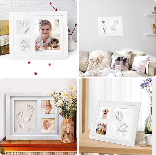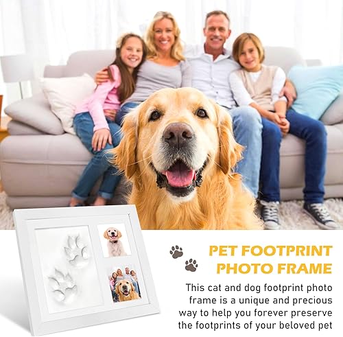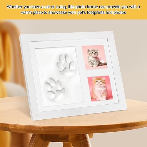 Sporgo Lot de cadres photo 3D en bois avec 2 photos et empreintes de pattes, rotatif à 360 °, cadre photo en bois pour chiens ou propriétaires de chats (avec emballage cadeau)