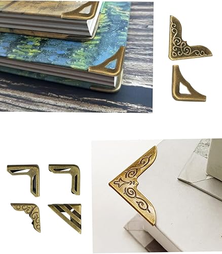 QLEUIFT 72 pièces 18 Ensembles Vintage Livre en Métal Coin Protection Album Coin Décoratif Protection Couverture(Bronze)