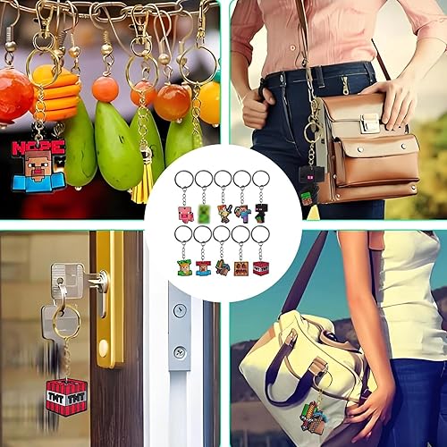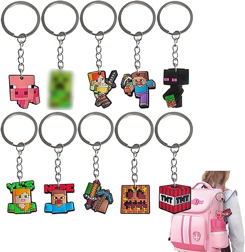 HGNUT Ensemble De 10 Porte-clés Aventure Construction De Blocs, Porte-clés Thématiques Jeux, Adaptés Pour Être Accrochés Sur Des Sacs À Dos Et Des Clés.
