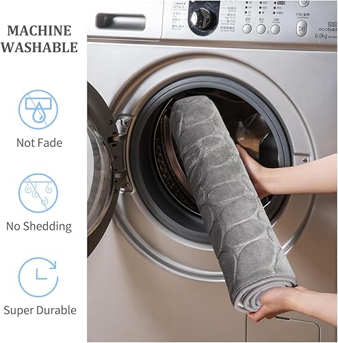 Xiaozhifu Tapis de Bain Set 4 Pièces, Mousse à MéMoire De Forme Tapis de Douche, Doux Tapis Salle De Bain Absorbant, Antidérapants tapis sortie de douche Lavable en Machine Gris Tapis Set DéCoratif WC