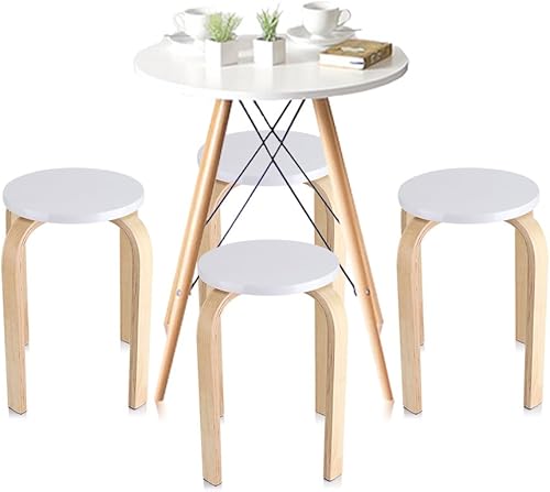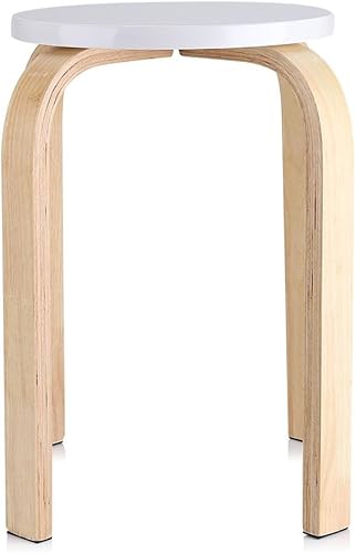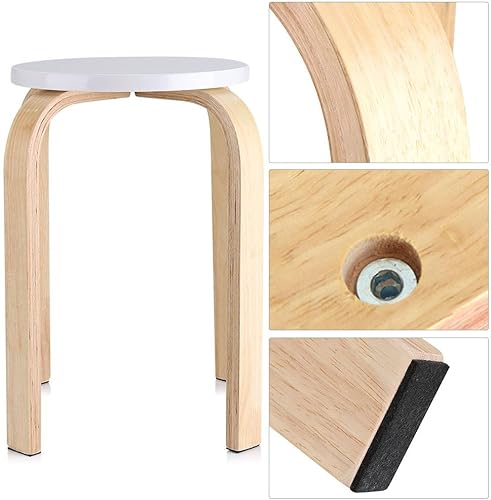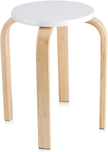 1 Pièce Tabouret en Bois Tabouret Empilable Chaise Ronde Chaise de Cuisine Tabouret Antidérapant Tabouret Stable Tabouret Empilable Pratique pour Maison(Blanc)