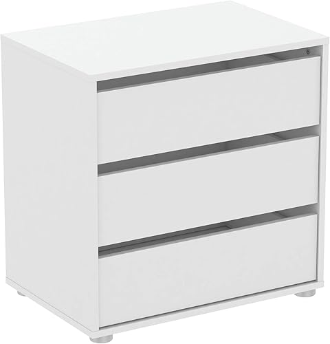 Demeyere BLOKTY Petite Commode de Rangement 3 Tiroirs Blanc Mat, Fabriqué en France, Garantie 2 Ans