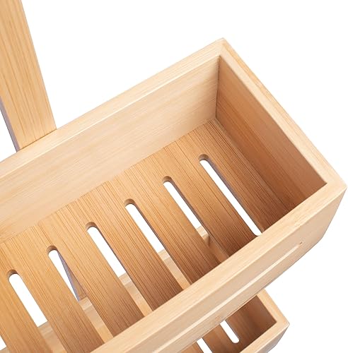 Schulte étagère de douche à suspendre bambou h: 60 x l: 28 x p:15 cm, sans percer, 2 paniers de rangement pour votre shampoing max. 5 kg