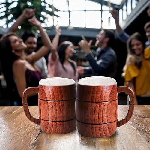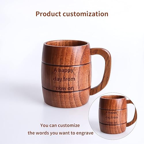 Dinikally Chope à Bière en Bois Gravée à la Main Personnalisée - Tasse Naturelle pour Lait de Bière (Sty1)