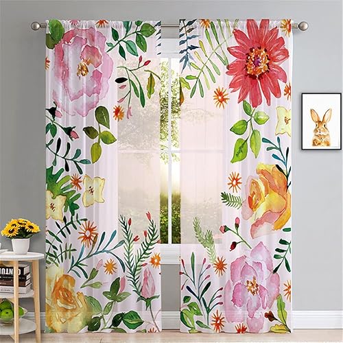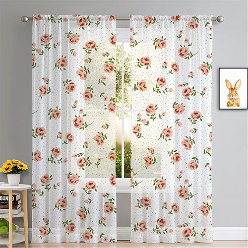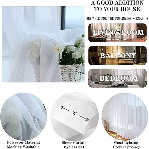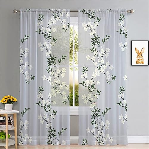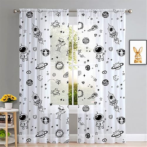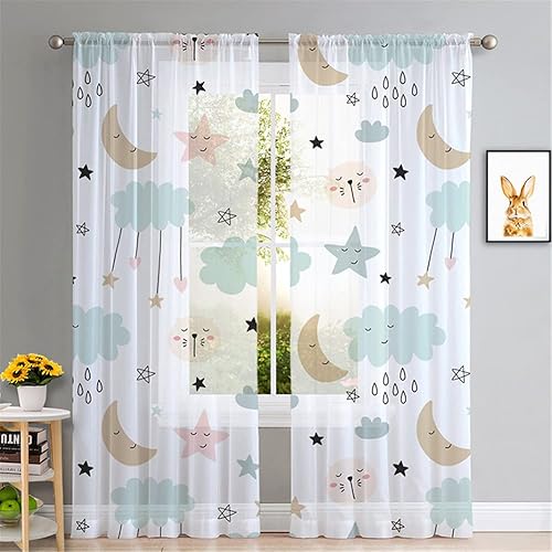 Hiseng Lot de 2 Rideaux Voilages Panneaux de Fenêtres Semi-Transparent en Effet Voile Décoration de Fenêtre pour Salle de Bain Balcon Chambre Salon Cuisine (Nuages et étoiles,109x164cm)