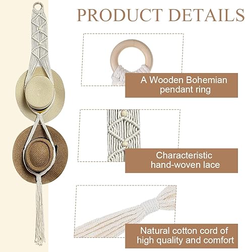 Cintres Muraux pour Chapeau Organisateur Chapeaux Bohème à Suspendre au Mur Support Décoratif pour Chapeau à Large Bord 1Pcs