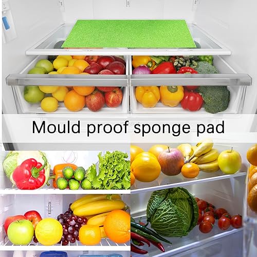 Lot de 4 Tapis en Éponge pour Réfrigérateur, Filtre Éponge pour Tiroir de Réfrigérateur Anti-Moisissure, Anti-moisissure, Lavable, Tapis pour Réfrigérateur, 45x29x0.3 cm, Vert