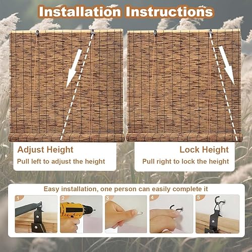 Stores en Bambou Rideau Naturel, Store Enrouleur Bambou Exterieur 50 65 85 100 125 140cm Montage Facile Rideaux en Roseau, Store Venitien pour intérieur et extérieur fenêtre