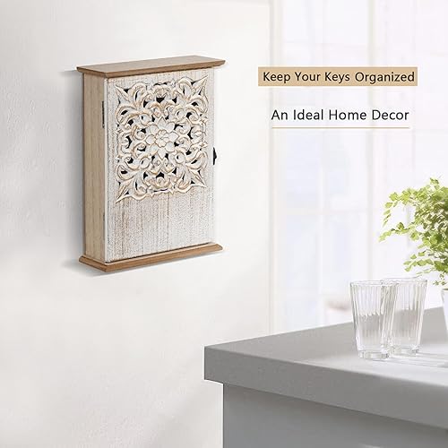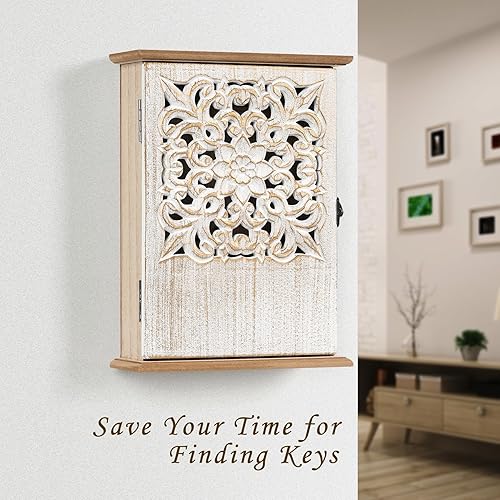 Optyuwah Armoire à clés en Bois avec Creux européens - 6 Crochets à clés - Porte-clés Mural ou Vertical pour entrée, Salon, Couloir, Cuisine