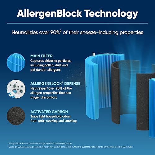 BLUEAIR Blue Pure 411 Max Series Filtre AllergenBlock de rechange authentique pour les allergies au pollen et aux squames d'animaux domestiques Compatible avec les purificateurs d'air Blue Pure 411i
