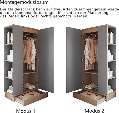 Zubaliya Armoire 70×40×170cm, Design à Une Porte, Armoire avec étagères et tiroirs, Blanc